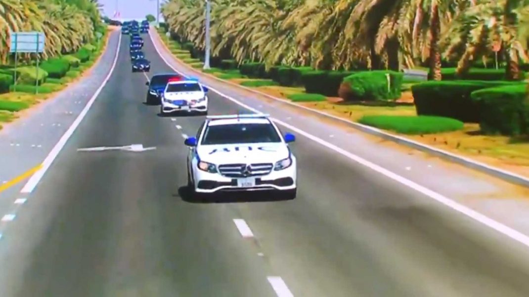 Журналист из «кремлёвского пула» и специальный корреспондент «Комсомольской правды» Дмитрий Смирнов опубликовал в своём Twitter несколько роликов того, как в ОАЭ встречали Путина. Кортеж российского президента сопровождали автомобили Mercedes с кириллической аббревиатурой ДПС (Дорожно-патрульная служба), но с арабскими номерами.