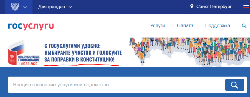 Пользователи сайта заметили, что в зависимости от региона проживания меняется надпись в верхнем левом углу экрана, и превращается в агитацию — «С Госуслугами удобно: выбирайте участок и голосуйте за поправки в Конституцию». Это актуально для таких регионов как Крым, Чечня, Краснодарский край, Калининградская область, а также городов в Урале и Сибири. Если в качестве региона проживания выбрать Москву или Московскую область надпись изменится на «Изменения в Конституцию на госуслугах: голосуйте на участке, дома, онлайн!».